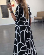 SPÉCIFICATIONS Style: Décontracté Matériel: Mélange de coton Type de la robe: Robe jambe droite Longueur de la robe: Maxi Forme du col: Col en V Type du dessin: Impression Longueur de la manche: Manches 3/4 Détails: Poche,Froncé Type d'ajustement: Habituel Saison: Printemps,Automne,Hiver Occasion: Quotidien Contenu du colis: 1 x Robe TABLEAU D...