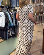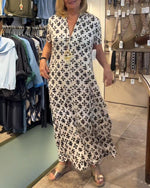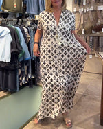 Robe longue imprimée décontractée avec col en V et manches courtes