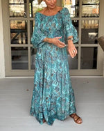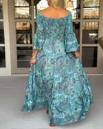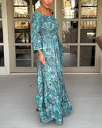 Robe longue imprimée élégante avec une épaule et manches évasées