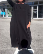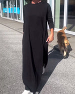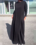 SPÉCIFICATIONS Style: Décontracté Matériel: Mélange de coton Type de la robe: Robe jambe droite Longueur de la robe: Maxi Forme du col: Col rond Type du dessin: Couleur pure Type de la manche: Manches régulières Longueur de la manche: Manches longues Détails: Froncé Type d'ajustement: Habituel Saison: Printemps,Automne,Hiver Occasion: Quotidie...