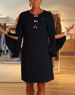 Robe Manche Evasée Boutonnée Droite