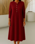 SPÉCIFICATIONS Style: Décontracté Matériel: Mélange de coton,Gaze Type de la robe: A-Line Longueur de la robe: Au-dessus du genou Forme du col: Col rond Type du dessin: Couleur pure Type de la manche: Manches régulières Longueur de la manche: Manches longues Détails: Boutons Type d'ajustement: Habituel Saison: Automne,Hiver Occasion: Quotidien...