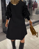 Robe Élégante À Manches Ballon Et Détails Patchwork
