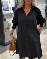 Robe Unie À Manches Longues Avec Détails Patchwork