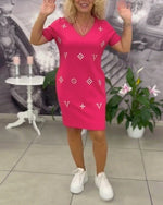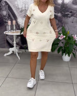 SPÉCIFICATIONS Style: Décontracté Matériel: Mélange de coton Type de la robe: A-Line Longueur de la robe: Au-dessus du genou Forme du col: Col rond Type de la manche: Manches régulières Longueur de la manche: Manches courtes Détails: Couture de matériau Type d'ajustement: Habituel Saison: Printemps,Automne,Hiver Occasion: Quotidien Contenu du ...