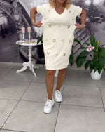 Robe À Col En V Avec Boutons Chaîne Et Empiècements En Tulle