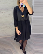 Robe Unie À Manches Longues Avec Détails Patchwork