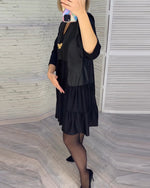 SPÉCIFICATIONS Style: Décontracté Matériel: Mélange de coton Type de la robe: A-Line Longueur de la robe: Au-dessus du genou Forme du col: Col en V Type du dessin: Paillettes,Couleur pure Type de la manche: Manches à volants Longueur de la manche: Manches longues Détails: Volants Type d'ajustement: Ample Saison: Automne,Hiver Occasion: Quotidi...
