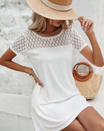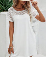 SPÉCIFICATIONS Style: Décontracté Matériel: Mélange de coton Type de la robe: A-Line Longueur de la robe: Au-dessus du genou Forme du col: Col rond Type de la manche: Manches régulières Longueur de la manche: Manches courtes Détails: Couture de matériau Type d'ajustement: Habituel Saison: Printemps,Automne,Hiver Occasion: Quotidien Contenu du ...