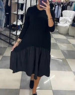 Robe Unie À Manches Longues Avec Détails Patchwork