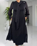 Robe Col Rond Manches Longues À Paillettes Patchwork