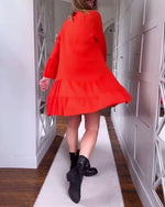 SPÉCIFICATIONS Style: Décontracté Matériel: Mélange de coton Type de la robe: A-Line Longueur de la robe: Au-dessus du genou Forme du col: Col en V Type du dessin: Paillettes,Couleur pure Type de la manche: Manches à volants Longueur de la manche: Manches longues Détails: Volants Type d'ajustement: Ample Saison: Automne,Hiver Occasion: Quotidi...