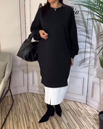 SPÉCIFICATIONS Style: Décontracté Matériel: Mélange de coton Type de la robe: Robe jambe droite Longueur de la robe: Au-dessus du genou Forme du col: Col rond Type du dessin: Couleur pure Type de la manche: Manches bouffantes Longueur de la manche: Manches longues Type d'ajustement: Habituel Saison: Automne,Hiver Occasion: Quotidien Contenu du...