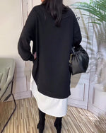 SPÉCIFICATIONS Style: Décontracté Matériel: A: 95% Polyester, 5% Élasthanne; B: 100% Coton Type de la robe: Robe jambe droite Longueur de la robe: Au-dessus du genou Type du dessin: Bloc de couleur Type de la manche: Manches d'épaule tombées Longueur de la manche: Manches longues Détails: Couture de matériau Type d'ajustement: Habituel Saison...