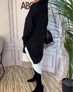 Robe Unie À Manches Longues Avec Détails Patchwork
