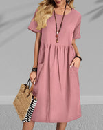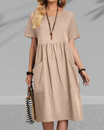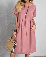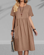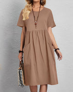 Attention mesdames ! Cette robe décontractée ample à col rond est le complément parfait à votre garde-robe ! Elle présente un design classique à col rond qui met en valeur votre cou, tandis que la coupe ample vous permet de profiter d'une sensation de confort et de liberté. La jupe a juste la bonne longueur pour couvrir vos jambes et ajouter une...