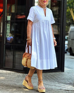 SPÉCIFICATIONS Style: Décontracté Matériel: Mélange de coton Type de la robe: A-Line Longueur de la robe: Midi Forme du col: Col à revers Type du dessin: Impression Type de la manche: Manches régulières Longueur de la manche: Manches neuf points Type d'ajustement: Habituel Saison: Printemps,Été Occasion: Quotidien Contenu du colis: 1 x Robe TA...