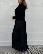 Robe Rétro À Col Montant Et Manches Longues