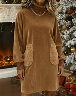 SPÉCIFICATIONS Style: Décontracté Matériel: Mélange de coton Type de la robe: Robe jambe droite Longueur de la robe: Au-dessus du genou Forme du col: Col rond Type du dessin: Couleur pure Type de la manche: Manches régulières Longueur de la manche: Manches longues Détails: Poche,Boutons Type d'ajustement: Habituel Saison: Automne,Hiver Occasio...