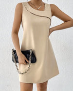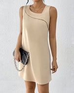 Robe sans manches à la mode avec col incliné et couleur unie