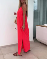 Robe Sans Manches Sans Bretelles Uni Fente