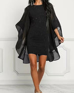 Robe Col Rond Manches Longues À Paillettes Patchwork
