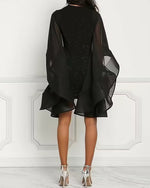 SPÉCIFICATIONS Style: Décontracté Matériel: Mélange de coton Type de la robe: A-Line Longueur de la robe: Au-dessus du genou Forme du col: Col en V Type du dessin: Paillettes,Couleur pure Type de la manche: Manches à volants Longueur de la manche: Manches longues Détails: Volants Type d'ajustement: Ample Saison: Automne,Hiver Occasion: Quotidi...