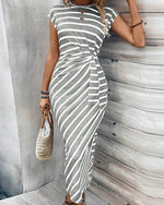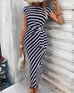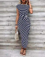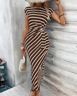 Robe svelte à manches raglan et à bretelles imprimées à rayures