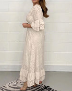 SPÉCIFICATIONS Style: Désirable Matériel: Mélange de coton Type de la robe: A-Line Longueur de la robe: Maxi Forme du col: Col en V Type du dessin: Impression Type de la manche: Manches bouffantes Longueur de la manche: Manches longues Détails: Lacet,Fente Type d'ajustement: Habituel Saison: Printemps,Automne Occasion: Quotidien Contenu du col...