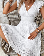 Robe Unie À Volants Et Détails Patchwork