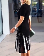 SPÉCIFICATIONS Style: Décontracté Matériel: Mélange de coton,Paillettes Type de la robe: Robe jambe droite Longueur de la robe: Au-dessus du genou Type du dessin: Paillettes,Couleur pure Type de la manche: Manches régulières Longueur de la manche: Manches 3/4 Détails: Couture de matériau,Transparente Type d'ajustement: Habituel Saison: Automne...