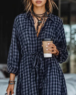 Robe Manches Longues À Patchwork Et Pied-De-Poule