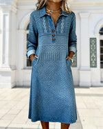 SPÉCIFICATIONS Style: Décontracté Matériel: Mélange de coton Type de la robe: Robe jambe droite Longueur de la robe: Midi Forme du col: Col à revers Type du dessin: Couleur pure Type de la manche: Manches régulières Longueur de la manche: Manches longues Détails: Couture de matériau,Boutons Type d'ajustement: Habituel Saison: Automne,Hiver Occ...
