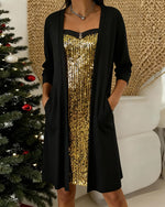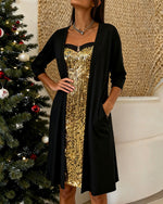 Robe Col Rond Manches Longues À Paillettes Patchwork