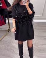 Robe tendance en patchwork de plumes et de paillettes de couleur unie