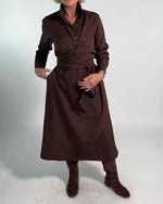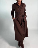 SPÉCIFICATIONS Style: Décontracté Matériel: Mélange de coton Type de la robe: Robe jambe droite Longueur de la robe: Midi Forme du col: Col à revers Type du dessin: Couleur pure Type de la manche: Manches régulières Longueur de la manche: Manches longues Détails: Couture de matériau,Boutons Type d'ajustement: Habituel Saison: Automne,Hiver Occ...