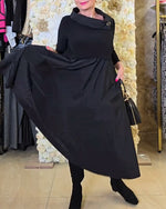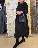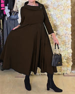 Robe Rétro À Col Montant Et Manches Longues