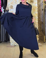 SPÉCIFICATIONS Style: Décontracté Matériel: Mélange de coton Type de la robe: Robe jambe droite Longueur de la robe: Midi Forme du col: Col rond Type du dessin: Couleur pure Type de la manche: Manches à gigot Longueur de la manche: Manches longues Détails: Dentelle Type d'ajustement: Ample Saison: Automne,Hiver Occasion: Quotidien,Faire la fêt...