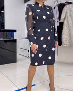 SPÉCIFICATIONS Style: Élégant,Faire la fête Matériel: Mélange de coton,Gaze Type de la robe: Robe jambe droite Longueur de la robe: Longueur du genou Forme du col: Col en V Type du dessin: Point Type de la manche: Manches bouffantes Longueur de la manche: Manches neuf points Détails: Couture de matériau,Poche Type d'ajustement: Habituel Saison...