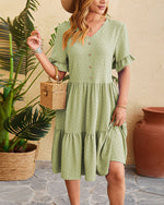 SPÉCIFICATIONS Style: Décontracté Matériel: Mélange de coton Type de la robe: A-Line Longueur de la robe: Au-dessus du genou Forme du col: Col en V Type du dessin: Paillettes,Couleur pure Type de la manche: Manches à volants Longueur de la manche: Manches longues Détails: Volants Type d'ajustement: Ample Saison: Automne,Hiver Occasion: Quotidi...