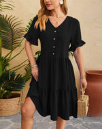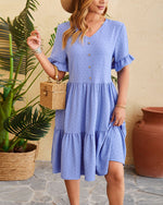 SPÉCIFICATIONS Style: Décontracté Matériel: Mélange de coton,Gaze Type de la robe: A-Line Longueur de la robe: Au-dessus du genou Forme du col: Col rond Type du dessin: Couleur pure Type de la manche: Manches régulières Longueur de la manche: Manches longues Détails: Boutons Type d'ajustement: Habituel Saison: Automne,Hiver Occasion: Quotidien...