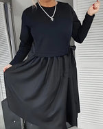 Robe Unie À Manches Longues Avec Détails Patchwork
