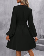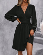 SPÉCIFICATIONS Style: Désirable Matériel: Mélange de coton Type de la robe: Robe moulante Longueur de la robe: Au-dessus du genou Forme du col: Col en V Type du dessin: Couleur pure Type de la manche: Manches à gigot Longueur de la manche: Manches longues Détails: Couture de matériau,Froncé Type d'ajustement: Habituel Saison: Automne,Hiver Occ...