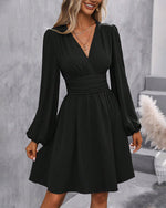 SPÉCIFICATIONS Style: Décontracté Matériel: Mélange de coton Type de la robe: A-Line Longueur de la robe: Au-dessus du genou Forme du col: Col en V Type du dessin: Paillettes,Couleur pure Type de la manche: Manches à volants Longueur de la manche: Manches longues Détails: Volants Type d'ajustement: Ample Saison: Automne,Hiver Occasion: Quotidi...