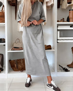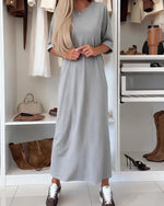 SPÉCIFICATIONS Style: Décontracté Matériel: Mélange de coton Type de la robe: Robe jambe droite Longueur de la robe: Maxi Forme du col: Col rond Type du dessin: Couleur pure Type de la manche: Manches régulières Longueur de la manche: Manches longues Détails: Froncé Type d'ajustement: Habituel Saison: Printemps,Automne,Hiver Occasion: Quotidie...
