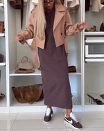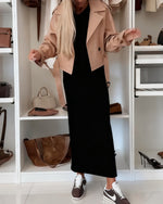 SPÉCIFICATIONS Style: Décontracté Matériel: Mélange de coton Type de la robe: Robe jambe droite Longueur de la robe: Midi Forme du col: Col à revers Type du dessin: Couleur pure Type de la manche: Manches régulières Longueur de la manche: Manches longues Détails: Couture de matériau,Boutons Type d'ajustement: Habituel Saison: Automne,Hiver Occ...