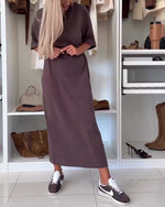 SPÉCIFICATIONS Style: Décontracté Matériel: Mélange de coton Type de la robe: Robe jambe droite Longueur de la robe: Maxi Forme du col: Col rond Type du dessin: Bloc de couleur Type de la manche: Manches régulières Longueur de la manche: Manches longues Type d'ajustement: Habituel Saison: Automne,Hiver Occasion: Quotidien Contenu du colis: 1 x...