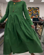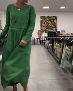 SPÉCIFICATIONS Style: Décontracté Matériel: Mélange de coton Type de la robe: Robe jambe droite Longueur de la robe: Maxi Forme du col: Col rond Type du dessin: Couleur pure Type de la manche: Manches régulières Longueur de la manche: Manches longues Détails: Froncé Type d'ajustement: Habituel Saison: Printemps,Automne,Hiver Occasion: Quotidie...