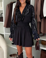Robe Col Rond Manches Longues À Paillettes Patchwork
