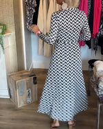 SPÉCIFICATIONS Style: Décontracté Matériel: Mélange de coton Type de la robe: Robe jambe droite Longueur de la robe: Maxi Forme du col: Col en V Type du dessin: Impression Longueur de la manche: Manches 3/4 Détails: Poche,Froncé Type d'ajustement: Habituel Saison: Printemps,Automne,Hiver Occasion: Quotidien Contenu du colis: 1 x Robe TABLEAU D...